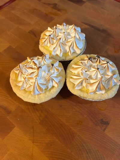Tangy lemon curd topped with fluffy, toasted meringue in a crisp gluten free tart shell.