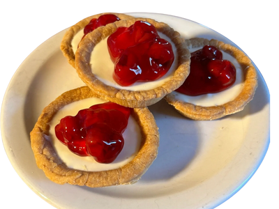 Rich, creamy cheesecake nestled in a gluten free tart shell and topped with sweet cherry filling.